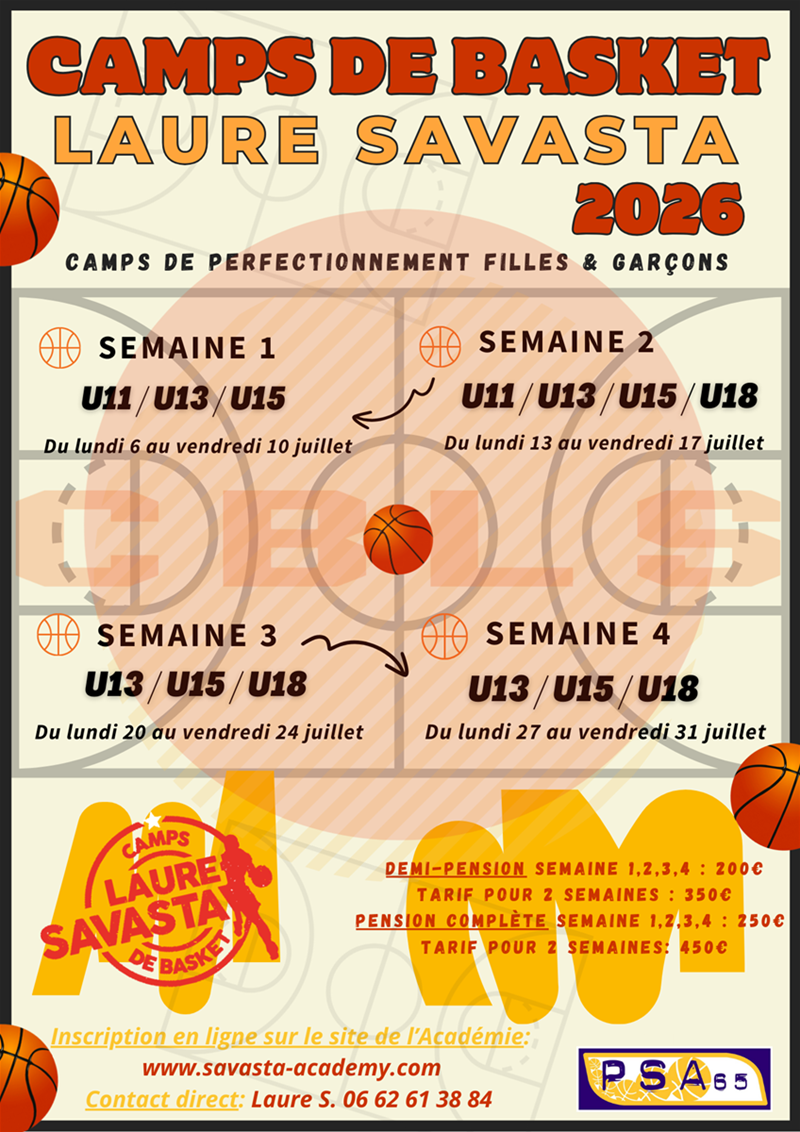 - du 20 au 24 juillet 2026 avec hébergement: catégories U13 à U18